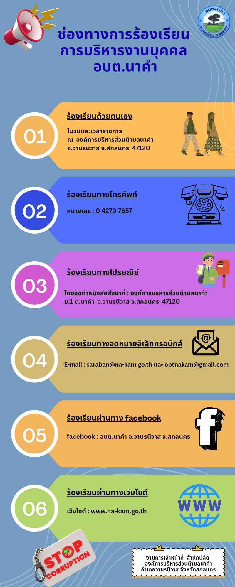 ช่องทางการร้องเรียนการบริหารงานบุคคล อบต.นาคำ